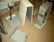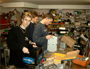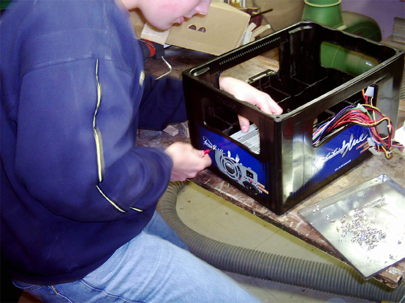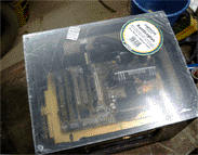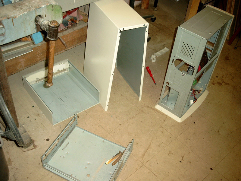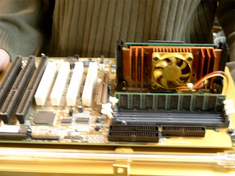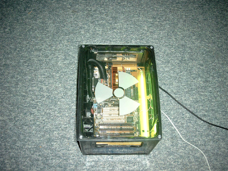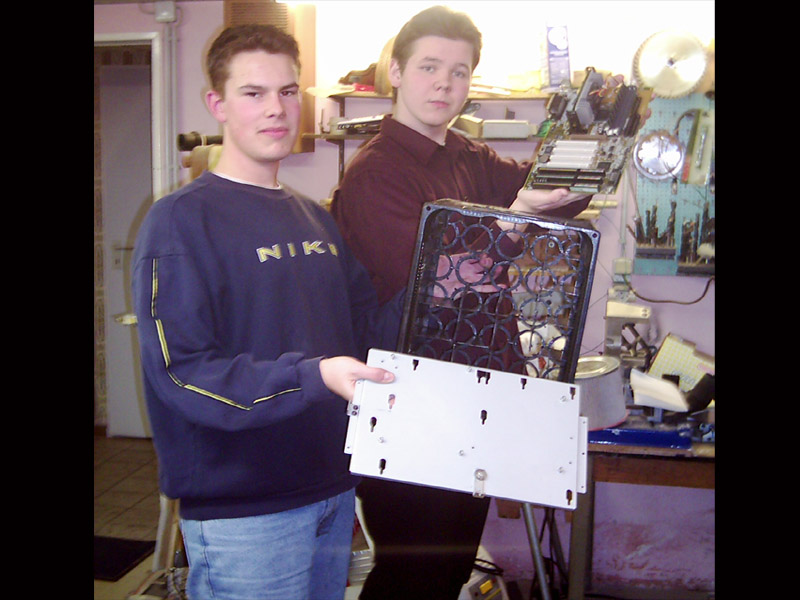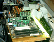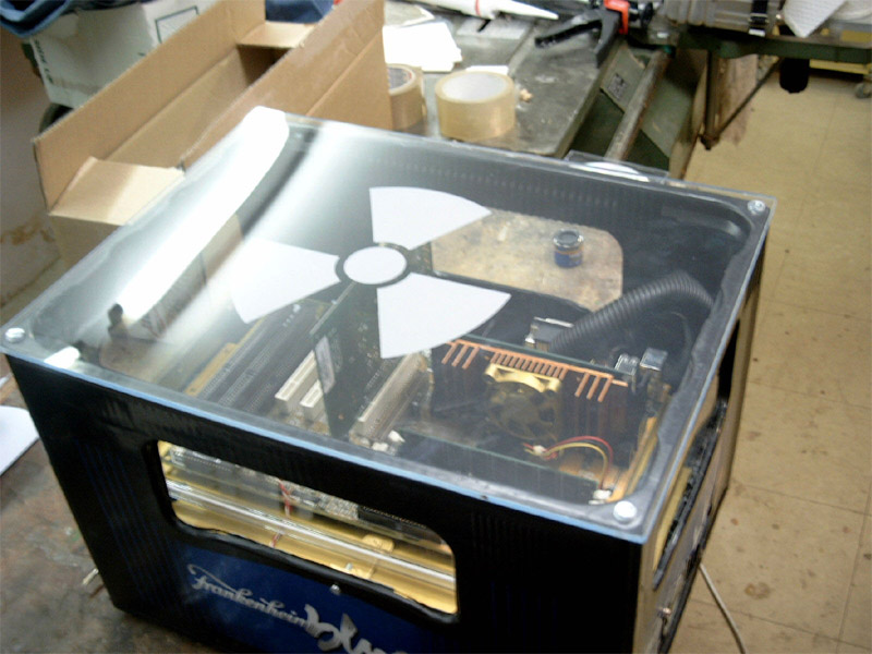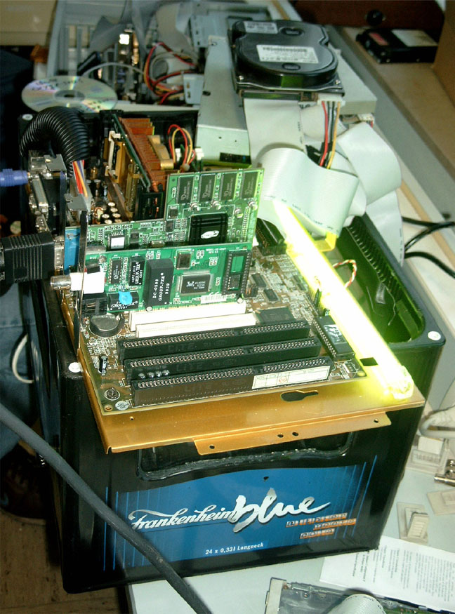 Falls ihr es noch nicht mitbekommen haben solltet, der ALC CLAN hat fieberhaft an einem Server gearbeitet, von dem später Bilder, Videos und andere Dateien heruntergeladen werden können. Wir haben hier einige Bilder zusammengetragen um euch zu zeigen, wie unser Server aussieht und wie wir bei der Arbeit vorgegangen sind. DER AUFBAU Wie man in den oberen Bildern erkennen kann, mussten wir erst mal die passende hardware zur Verfügung stellen. Bild oben links zeigt die drei wichtigesten Komponenten. Der Bierkasten, der als Gehäuse verwendet wird, das Blech, unter dem später die HDDs, das NT und das CD ROM Laufwerk untergebracht werden und auf dem das Board mit den einzelnen Karten gelegt wird. Die ganzen Teile haben wir aus alten Rechnern ausgebaut, die man im oberen mittleren Bild sehen kann. Um das Gerät etwas interessanter aussehen zu lassen, haben wir das Blech mit goldener Farbe besprüht, sieht viel besser so aus! Links sieht man den Arbeitskeller, der uns eine staubfreie Umgebung bietet *g*. Im mittleren Bild einmal eine seitliche Ansicht unserer geilen Kiste. Rechts sieht man Frankenheimer, Veltins und Jägermeister bei der Arbeit. Dann wurde richtig gearbeitet, CD Laufwerk muss reinpassen, ein NT haben wir schon eingebaut wie man im mittleren Bild sieht. Rechts zeigt den Server wie er später ungefähr aussehen wird, das Blech ist wie oben schon genannt, mittlerweile vergoldet, unter dem Blech haben wir schon eine kleine HDD, untergebracht, ein CD-ROM Laufwerk ist drin und das NT. Nach diesen Arbeitsschritten besorgten wir aus einem namenhaften Baumarkt , dessen Namen wir hier aus werbetechnischen Gründen nicht nennen dürfen (Soviel sei gesagt: Fängt mit O an und hört mit BI auf). Um nun einen ausreichenden Schutz der Inneren des Servers zu gewährleisten, installierten wir eine Plexiglasscheibe auf seiner Oberseite, sowie an den Seiten, die wir mit Hilfe einer Kreissäge zurechtschnitten.Um das ohnehin schon eindrucksfolle Gehäuse noch weiter aufzuwerten, bestellten wir eine grüne Kathode und ein Window-Aufkleber mit einem Atom Symbol. Bild links zeigt den nun fast fertigen Server von der Seite, man beachte den Startknopf der aus einem RiGO Kronkorken besteht. Zur Verziehrung des Hauptstromkabels benutzen wir einen schwarzen PVC-Schlauch wie man ebenfalls erkennen kann. Das mittlere Bild zeigt den Server von einer etwas grösseren Distanz, wobei hier noch nicht die Schutzfolie der Plexiglasscheibe entfernt wurde und sie im Moment einen trüben und zerkrazten Eindruck macht. Auch der Window Aufkleber ist in dieser Aufnahme noch nicht zu erkennen. Bild rechts zeigt den Server von oben, auch hier sei noch einmal die durch die Schutzfolie hervorgerufene Trübung zu erwähnen, aber schon gut zu erkennen ist der vergoldete Mainboardschlitten und das schon fertig montierte Mainboard. Hier noch ein paar nachgetragene Bilder, wie die Hardware zusammengesetzt wurde. Links kann man unseren CPU Kühlkörper erkennen, den wir ebenfalls vergoldet haben, der Lüfter wurde ebenfalls vergoldet. Die durch die Farbe entstandene Wärmestauung ist nur minimal und bei unserer so niedrig getakteten CPU nicht weiter relevant. Auf dem mittleren Photo sieht man noch einmal das gesamte Board, mit CPU, Kühler, RAM. Hier kann man schon ganz gut erkennen, wie der vergoldete Kühler später wirken wird. Der Kasten hat gestalt angenommen und da jetzt alles noch schön offen liegt und verändert werden kann, haben wir schon früh damit begonnen, Betriebssystem und sonstige Software zu installieren. (Anmerkung) Die dort zu sehenden Karten sind nie verbaut worden. Die noname Netzwerkkarte haben wir durch eine 3COM Fast Etherlink ersetzt, die im Hintergrund zu sehende ATI Rage PRO war aufgrund der nur minimalen Leistungsansprüche nicht nötig. Wir haben sie durch eine ATI 2MB PCI Variante ausgetauscht, die ihren Dienst genauso erfüllt, ausserdem ist die Wärmeentwicklung deutlich geringe, was bei unserem Kasten wichtig ist, da nur ein NT und ein CPU Lüfter vorhanden sind. Nach langem Arbeiten haben wir unseren Server endlich fertiggestellt. Auf der kleinen, aber durchaus ausreichenden HDD (3,2GB) haben wir Windows 2000 installiert, die gesamten Bilder und Photos, Videos etc. untergebracht und das Netzwerk eingerichtet. Bild Links zeigt den fertigen Server von der Seite, im mittleren Bild haben wir den Server mit dem jetzt deutlich zu erkennenden ATOM-Aufkleber photographiert. Bild Rechts zeigt den Server von weiter oben, auch hier kann man sehr deutlich den vergoldeten Mainboardschlitten erkennen, der ganz gut zur Farbe des Motherboards passt. Hier hänge ich noch einmal ein paar Photos vom fertigen Server an. Hier kann man schon ganz deutlich die grüne Kathode sehen, die aber erst nach ein paar Minuten ihre vollkommende Leuchtkraft erreicht hat. Ihr fragt euch vielleicht, warum zwei Kabel zu unserem Bierkasten führen... Das weisse Kabel ist für unsere zweite Leuchte, die ihr im Bild ganz rechts gut sehen könnt. Diese rote Leuchte kann man so manuell ein und ausschalten, je nach Geschmack. Dauert brennen lassen können wir sie nicht, da sie ordentlich wärme produziert, nach ein paar Stunden sollte man sie schon ausschalten.