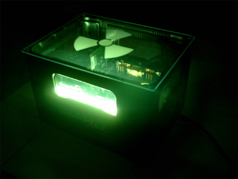 Hier könnt ihr 3 Photos bei völliger Dunkelheit bestaunen, links noch mit zugeschalteter roter Lampe, in der Mitte und Rechts nur mit der grünen Kathode. Wir waren selber überrascht, wie gut das ganze im Dunklen aussieht, vor allem nicht in einem Bierkasten. Umso erstaunter waren wir als wir plötzlich eine Nachricht von der Stern Redaktion bekamen, die unseren Bierkastenserver für einen Artikel über Casemodding photographieren lassen wollte. Zuerst hielten wir das ganze für einen Scherz, als dann aber ein Phototermin feststand und wir alles per E-Mail besprochen hatten, konnten wir sicher sein das es kein Scherz war Bild links zeigt den Profi- Photgraphen vom Stern mitsamt Assistentin und einer Photo- Ausrüstung die sich jeder Hobby- Photograph wünschen würde. Die Ausrüstung hatte einen ungefähren Wert eins gehobenen Mittelklasse-Wagens. Das rechte Bild zeigt ein Motiv, wie es ungefähr später im Stern abgebildet werden wird. Ihr könnt also gespannt sein........ Wichtig! Diese von uns erstellten Photos dürfen nicht ohne unser Zustimmung verwendet werden. Wenn Ihr die Bilder auf eurer Seite veröffentlichen möchtet, lest bitte zuerst die FAQs. |