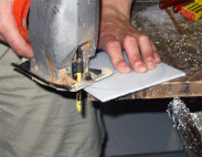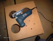 Veltins begann dann anschließend die Platten entlang der Linie mit einer Stichsäge rund zu schneiden, dies ist im rechten Bild zu sehen.