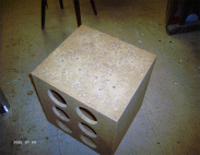 Der Deckel wird einfach, wie bei einem Schuhkarton, oben aufgesetzt und liegt absolut bündig auf, mit ihm wird auch erst die vollkommen viereckige Form erreicht. Wir müssen vermutlich noch etwas Holz abschleifen, denn der Deckel lässt sich bislang nur sehr schwer abnehmen, weil er noch nicht so oft geöffnet wurde.