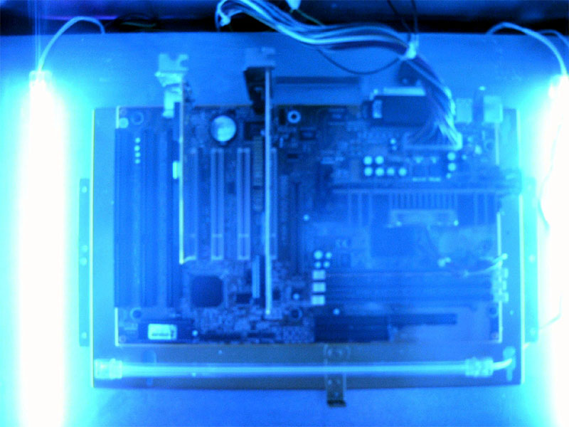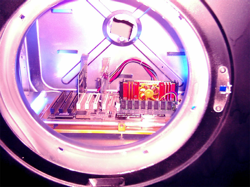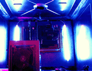 Da wir bemerkt haben, dass der Trockner sehr gut bei euch angekommen ist und wir bislang nur postives Feeback erhalten haben, sahen wir uns dazu veranlasst, einige eurer Vorschläge aufzugreifen und als Verbesserung in unseren Trockner einzubauen. Die grundlegensten Veränderungen bei Version 1.1 sind die konsequente Weiterentwicklung der Elektronik und der Steuerelemente. Die optisch größte Veränderung dürfte aber der Wechsel von der grünen Kathode, die wir schon im Bierkastenserver verbaut hatten hin zu blauen Dual-Kathoden und einer Schwarzlichlampe, sowie die rote Beleuchtung des Voltometers. Desweitern fällt der Einbau von einem Laufwerksschacht ins Auge, der mit einem CD-ROM Laufwerk und unserer gemoddeten HDD bestückt ist. Alle Komponenten sind selbstverständlich in silber lackiert um optisch ins Gesamtbild hineinzupassen. Das Voltometer ist wie oben schon erwähnt, nun beleuchtet und betriebsbereit, es zeigt die momentane Spannung auf der Hauptleitung. Auch fand ein zweites NT den Weg in unseren Trockner, um eine sichere Stromversorgung für alle Komponenten zu gewährleisten. Für evtl. anfallende Reperaturen auf einer Lan haben wir ein Staufach für Kleinteile wie etwa Schrauben, LEDs etc. installiert. Diese Modifikationen haben einige Zeit in Anspruch genommen und dementsprechend ist auch die Bewertung auf einigen LANs ausgefallen. Wir haben es zwar noch nicht geschafft, bei einem Casemod Wettbewerb zu gewinnen, aber die Resonanz ist bislang nur postiv ausgefallen, ausserdem war der Trockner dort ein echter Blickfang. Doch die Akte-Lan-Gigant ist noch nicht geschlossen, wir arbeiten weiter fieberhaft an einer Version 1.2 in der die Elektrik weiter perfektioniert wird und aus transporttechnischen Gründen wäre es angebracht Rollen unter dem Trockner zu befestigen. Für das Innenleben haben wir noch weitere kreative Ideen die wir aber an dieser Stelle noch nicht verraten möchten, ihr könnt uns auch selbst noch ein paar Verbesserungsvorschläge zukommen lassen, schliesslich soll der Casemod ja auch euch gefallen Also, ihr dürft gespannt sein, denn bis zur Fertigstellung von Version 1.2 wird es noch einige Zeit in Anspruch nehmen. |