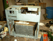 **** Casemod : BLUE LIGHTNING - Der Aufbau**** ****UPDATE**** Bilder vom 20.02.2004 Diesmal: Erste Testläufe des Wasserkreislaufes und Anpassung der Tower Wir haben die ersten freien Stunden nach der Schule natürlich sofort wieder genutzt, um an unserem aktuellen Projekt weiterzuarbeiten. Nach den groben Arbeiten geht es nun langsam ins Detail, jeder weitere Schritt sollte deshalb gut überlegt sein, denn jetzt kann man nicht mehr viel rückgängig machen. Da wir uns ja längere Zeit Gedanken darüber gemacht hatten, wie wir das Wasser ausreichend kühlen sollten, kamen wir dann doch zu dem Entschluss, dass ein Radiator für weitere Arbeiten unbedingt notwendig ist, weshalb sich Veltins und Jägermeister sofort auf die Suche nach einem passenden Gerät machten. Wichtig auch hier; der Kostenfaktor. Auf einem Schrottplatz wurden sie schließlich fündig, ein großer Radiator (wir vermuten stark von einem Motorrad) lag dort herum. Kosten für uns : 5€. Dann mussten wir noch eine neue Pumpe besorgen, die übernahm Jägermeister, denn bei der alten Pumpe verabschiedeten sich die Schaufelräder . Die neue 300L/h Eheim Pumpe kostete uns im Baumarkt 10€ .