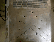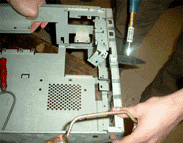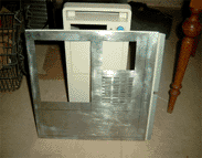 **** Casemod : BLUE LIGHTNING - Der Aufbau**** ****UPDATE VOM 01.03.2004**** So, am Wochenende haben wir wieder etwas weitergearbeitet, aber diesmal nicht ganz so spektakulär, aber das kann es ja nicht immer sein, schließlich müssen auch mal langweilige Arbeiten gemacht werden;-) Hauptarbeiten: - Weitere Anpassung des Towers an die ATX Norm Wie man im folgenden Bild leider nicht so ganz deutlich erkennen kann, war für den weiteren Bau der Schacht im Weg, der sonst für die CD-Laufwerke vorgesehen ist. Da dieser aber noch im anderen Tower intakt ist, kann man auf diesen Käfig sehr gut verzichten. Schließlich würde er auch die Optik stören, denn es wird ein breites Windows in das Seitenteil gebaut, dazu aber später